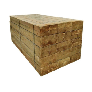 Traverses de bois traités vert UC4 (paquet de 36) – Dim: 2,4 m x 200 mm x 100 mm +/- 5 mm