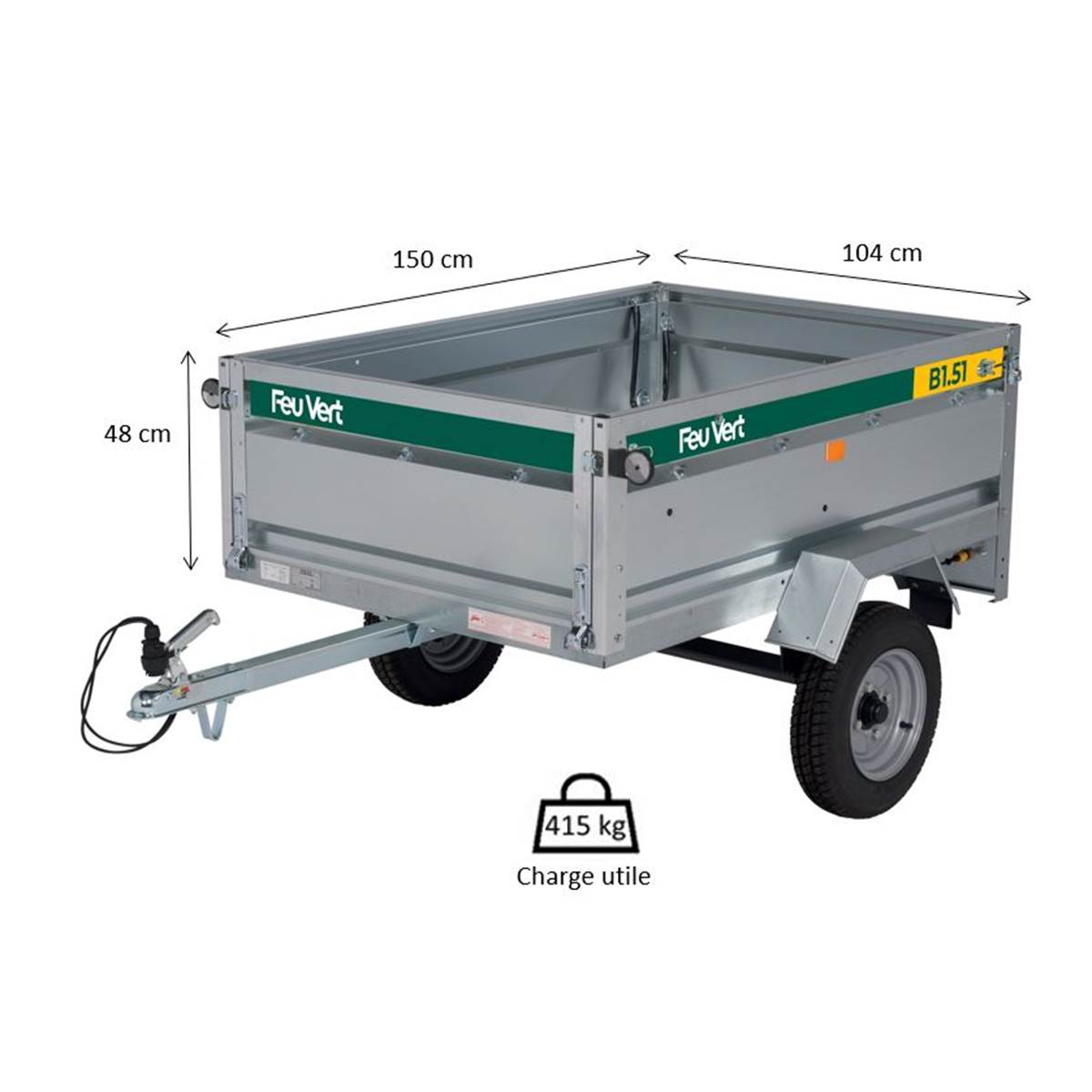 Caractéristiques de la remorque Feu Vert B1.51 :